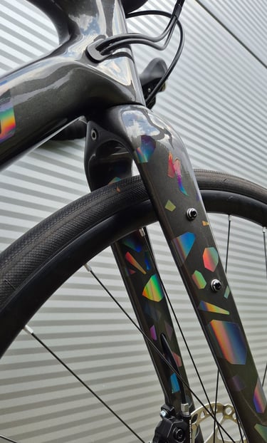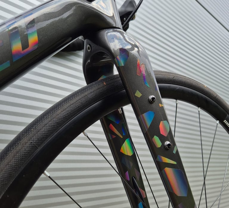 If you want to enjoy your current ride all over again and feel truly unique – that’s the place. Meticulous work and an on-point execution of the idea – we chose an exclusive (holographic) film, collected examples of shapes/placements we liked, and I handed it over to Bike-off. Seeing it in person, my expectations were fully met ! A big thank you 🙏🏼